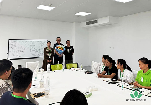 On September 12, 2023, Mr. Peter Li, Vice President of Green World Group and President of Green World South American Region, came to Nanjing production base after the 2023 Green World International Travel Forum and held a symposium with managers of Nanjing Production Base. At the meeting, President Peter Li introduced the rapid rise and market operation status of Green World Group in South America and Latin America in the past four years, and then shared with everyone the main development direction of several best-selling products in the direct selling market, as well as the trend of health care products for daily life,snacks and younger consumer groups. At the same time, he looked forward to the future development plan and performance goals of the Latin American market.