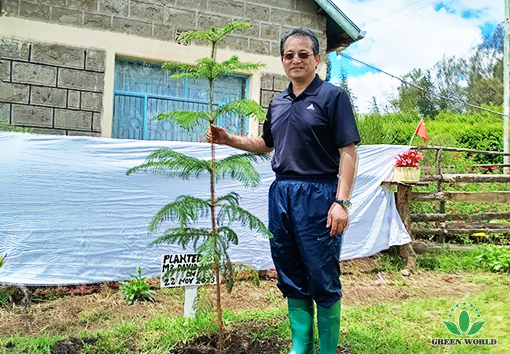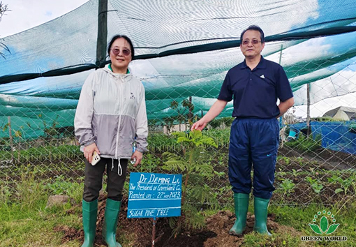 On the morning of November 22, 2023, Green World Group President Dr. Deming Li, Green World African Region President Mr. David L.Zhang and Professor Jason Zhang, together with General Manager of Kenya Branch Mr. William Su and senior distributor leaderJoseph Kemani, came to Naivasha, a city in central Kenya, where there are a large number of farms and flower fields. They visited the pyrethrum planting base. A large number of farmers in Naivasha grow pyrethrum. After applying Green World Nutriplant Organic Plus Fertilizer, the yield and quality of pyrethrum have been improved, and the income of local farmers has been increased. Finally, Green World Group President Dr. Deming Li, Green World African Region President Mr. David L.Zhang and Professor Jason Zhang, planted the tree seedling at the farm as a souvenir.