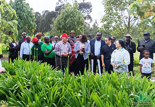 On November 20, 2023, Dr. Deming Li, President of Green World Group, Mr. David L. Zhang, Vice President of Green World Group and President of African Region, and Professor Jason Zhang, Senior Advisor and Chief Scientist of Green World Group from United States Department of Agriculture, Ms. Jenna Li, General Manager of Green World (Lishui) Biotechnological Co., Ltd. and Ms. Rainie Wang, vice director of Green World Business School, came to Kenya Branch, the second stop of this journey for love and glory.