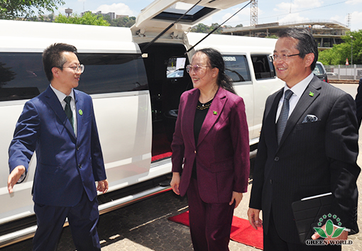 Green World Diamond Club members and top management left for the venue in luxury limousines, showing the full respect to them. After the celebration began, Mr. Glory Guo, General Manager of Green World South Africa Johannesburg Branch, as the host, made a welcoming speech and expressed his welcome and gratitude to all the guests who participated in the event. After that, Mr. Kevin Huang, General Manager of Green World South Africa Durban Branch, and Ms. Jessica Yang, Deputy Manager of Green World South Africa Cape Town Branch, made addresses successively. HRH PRINCE NHLANGANISO KAZWELITHINI ZULU, the prince from the Zulu Kingdom, warmly recalled the deep friendship between Green World and the late Zulu King, and said that he would join hands with Green World to a more brilliant future. Then, Mr. David L. Zhang, Vice President of Green World International Group and President of Green World African Region, summed up the brilliant achievements of Green World in Africa, and called on distributors to move forward in the next year and make greater contributions to Green World’s next 30th anniversary. At last, Prof. Deming Li, President of Green World International Group, emphasized the milestone significance of Green World's 30th anniversary and promised that Green World would provide better products and services to all business partners in the future.
