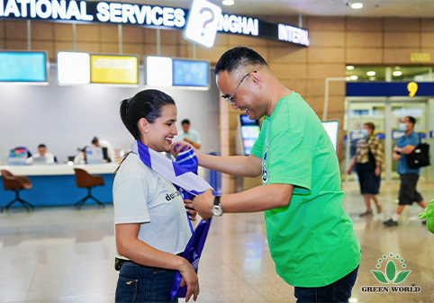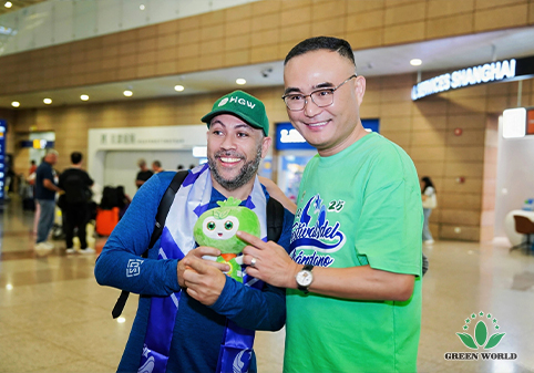Whether at Nanjing Lukou Airport or Shanghai Pudong Airport, the reception teams waited early in the arrival halls. Holding bright Green World flags and eye-catching welcome boards, they stood out as the most striking sight in the crowd.