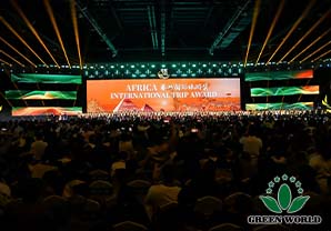 At 1:30 p.m., with the passionate introduction by the host Zheng Huadan and Karl, Prof. Deming Li, President of Green World International Group, and the top management team as well as distinguished guests entered the venue with great honor! The distributor leaders from the African region, Latin American region, Southeast Asian, South Asian and Central Asian region, China region walked into the venue with firm steps and confident smiles.