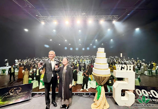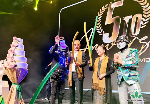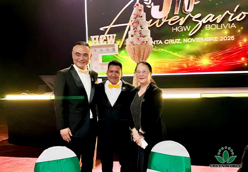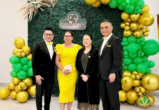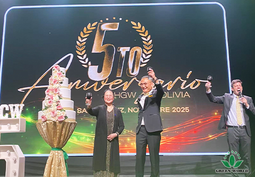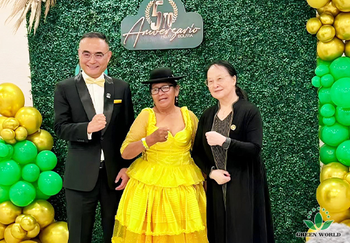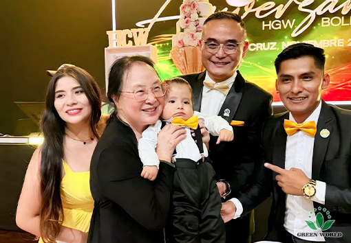On the evening of November 14th, local time in Bolivia, the 5th Anniversary Celebration Gala Dinner of Green World International Group Bolivia Branch was grandly held at the FEXPOCRUZ venue in Santa Cruz de la Sierra. Prof. Deming Li, Chairman and President of Green World International Group, Mr. Peter Li, Director of the Board, Vice President of Green World International Group and President of Latin America Region, Ms. Ying Liang, General Manager of USA Branch and Canada Branch, Mr. Gabriel, General Manager of Green World Bolivia Branch, Ms. Andrea, Business Manager of Green World Bolivia Branch, Mr. Omar, Event Manager of Green World Bolivia Branch, as well as family physician Shen Lijing couple, along with over 600 people including branch employees and distributors, gathered together to jointly witness this warm and passionate moment of honor.