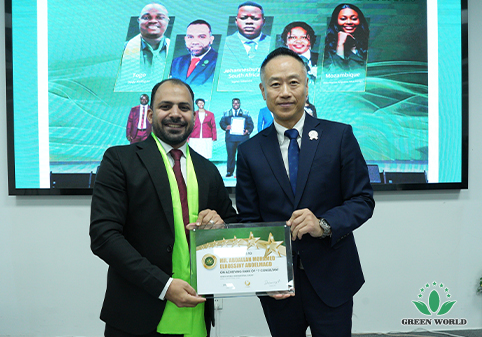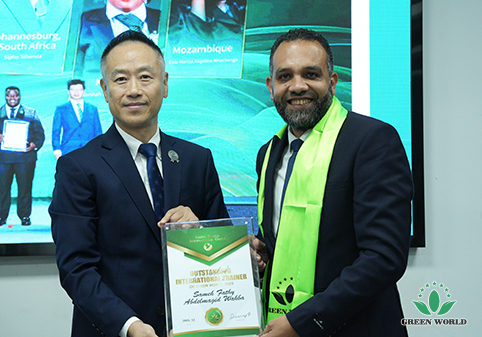 In the long-anticipated awarding session, Mr. Shaobo Liu, Director of the Board and President of Green World China Region, personally presented the “Seven-Star” level honor to Ms. Amany Mohammed, Mr. Sameh Fathy, and Mr. Abdallah Mohamed. Mr. Sameh Fathy also received the International Trainer Award for his exceptional contributions. The warm applause and heartfelt congratulations filled the entire room, which were the praise for their past efforts.