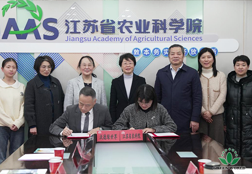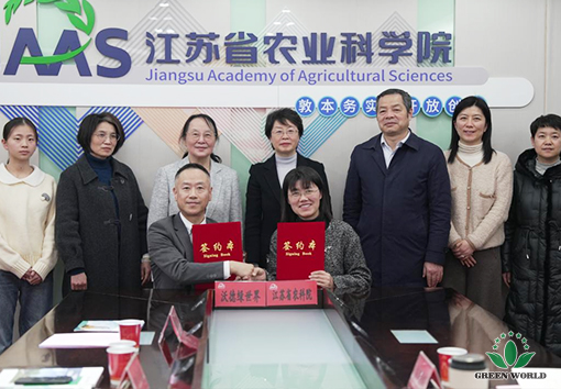 On January 21st, 2026, Prof. Deming Li, President of Green World International Group, together with Mr. Shaobo Liu, Director of the Board and President of Green World China Region, and Ms. Qiaoying Liu, Executive Deputy Manager of Green World Nanjing Production Base, visited the Jiangsu Academy of Agricultural Sciences (JAAS) for research exchange and discussions. The two sides held in-depth talks on the transformation of agricultural technologies and international cooperation, and formally signed an industry-academia collaborative research agreement.